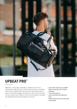 for travel, college or gym. UpBeat Pro doesn’t only look good, but also offers • Iconic colour details and rubber logo