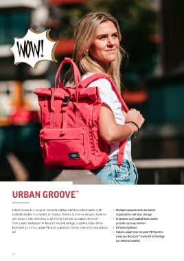 backpack, to a more urban lifestyle approach. Choose your style and groove • Extreme lightness