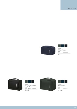 TOILET KITS 145864 Toilet Pouch 23 x 12 x 13 145865 145866 Hanging Toilet Kit Weekender 25.5 x 11.5 x 18.5 26 x 15 x 11 187
