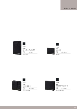 LEATHER GOODS 144546 144547 727 - 732 - All in One Wallet ZIP 6CC H S 9 x 13 x 1 7.6 x 10 x 0.5 12 6 144548 144549 048 - 049 - B 9CC+ZC+C B S 9CC+VFL+2C+W 10 x 8.8 x 1 10.5 x 8.8 x 1 2 9 2 9 2 197